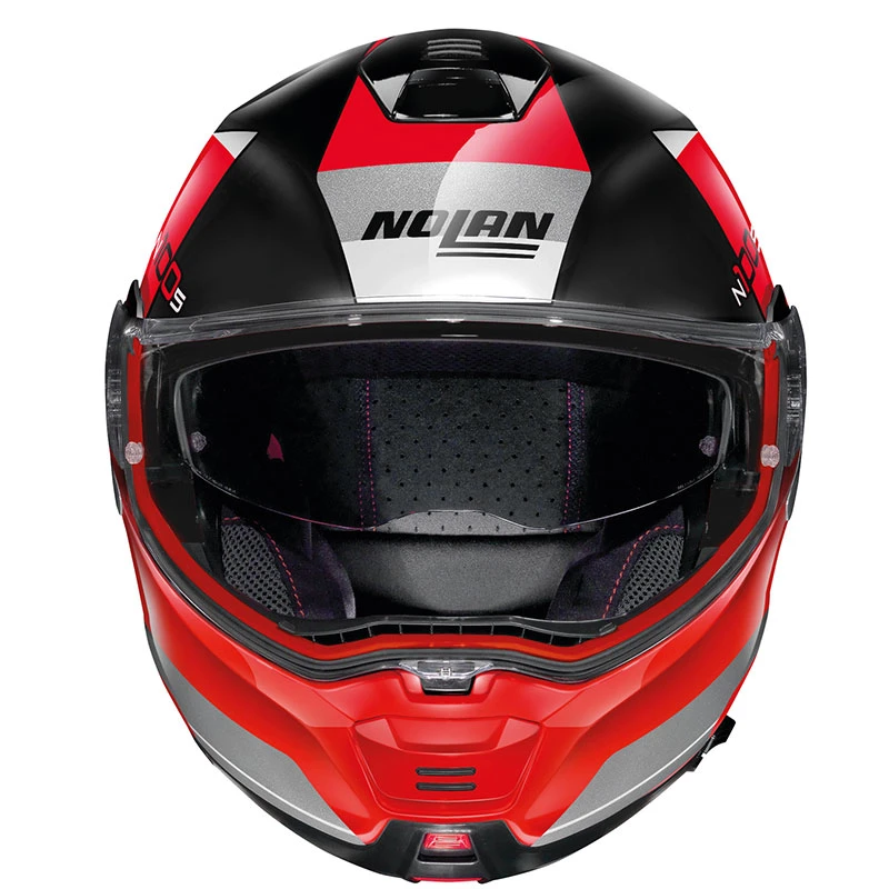 È il nuovo apribile top di gamma Nolan. Si caratterizza per il design elegante, le ricche dotazioni tecniche e l’ampia disponibilità di colori e grafiche. Volume contenuto (grazie alla disponibilità di due misure di calotta esterna), doppia omologazione P/J, visiera ultrawide, schermo parasole VPS (regolabile in svariate posizioni e dotato di sistema di richiamo automatico), sistema di ventilazione superiore AirBooster Technology, movimento di rotazione della mentoniera con traiettoria ellittica, esclusivo sistema di apertura della mentoniera con meccanismo a doppia azione, sistema di ritenzione con regolazione micrometrica a doppia leva Microlock², innovativa imbottitura interna di conforto Clima Comfort (con tessuti micro-forati) e predisposizione per il sistema di comunicazione N-Com vogliono fare di N100-5 uno degli apribili di riferimento per il moto-turista più esigente.