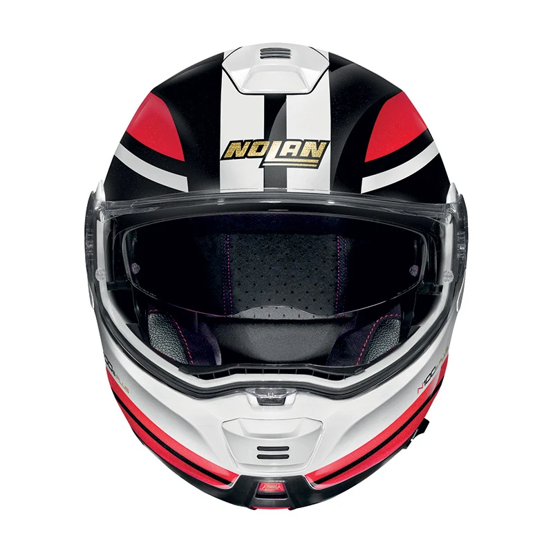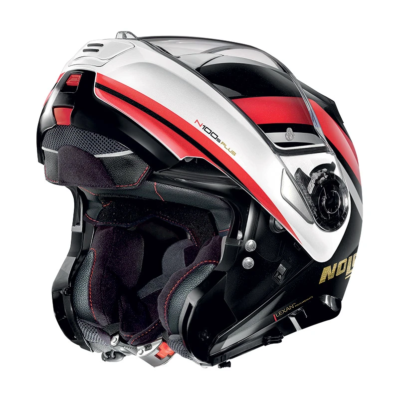 È la nuova e più esclusiva versione dell’apribile top di gamma di Nolan, ora arricchito dell’imbottitura interna di conforto Clima Comfort con innovativa costruzione a rete e del sistema di regolazione della posizione della cuffia (LPC-Liner Positioning Control). I nuovi contenuti tecnici trovano riscontro in una vestizione grafica sportiva ed elegante e nella completa revisione stilistica dell’imbottitura interna di conforto. Sono poi confermate le consolidate caratteristiche tecniche che fanno di N100-5 un prodotto apprezzatissimo dai moto-turisti più esigenti: volume contenuto (grazie alla disponibilità di due misure di calotta esterna), doppia omologazione P/J, visiera ultrawide, schermo parasole VPS (regolabile in svariate posizioni e dotato di sistema di richiamo automatico), sistema di ventilazione superiore AirBooster Technology, movimento di rotazione della mentoniera con traiettoria ellittica, esclusivo sistema di apertura della mentoniera con meccanismo a doppia azione, sistema di ritenzione con regolazione micrometrica a doppia leva Microlock2, imbottitura interna di conforto Clima Comfort (con tessuti micro forati e paranuca regolabile) e predisposizione per il sistema di comunicazione N-Com.