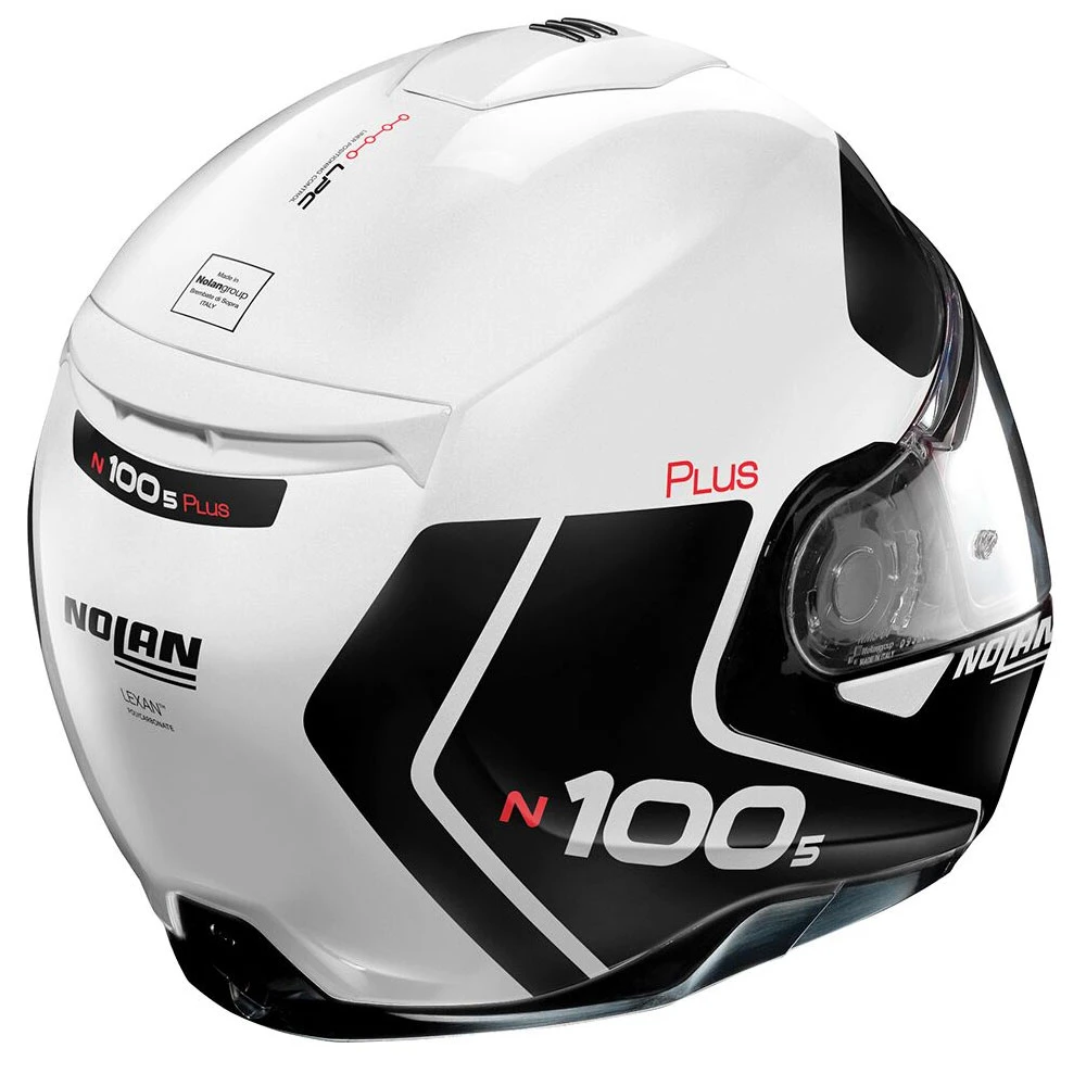 È la nuova e più esclusiva versione dell’apribile top di gamma di Nolan, ora arricchito dell’imbottitura interna di conforto Clima Comfort con innovativa costruzione a rete e del sistema di regolazione della posizione della cuffia (LPC-Liner Positioning Control). I nuovi contenuti tecnici trovano riscontro in una vestizione grafica sportiva ed elegante e nella completa revisione stilistica dell’imbottitura interna di conforto. Sono poi confermate le consolidate caratteristiche tecniche che fanno di N100-5 un prodotto apprezzatissimo dai moto-turisti più esigenti: volume contenuto (grazie alla disponibilità di due misure di calotta esterna), doppia omologazione P/J, visiera ultrawide, schermo parasole VPS (regolabile in svariate posizioni e dotato di sistema di richiamo automatico), sistema di ventilazione superiore AirBooster Technology, movimento di rotazione della mentoniera con traiettoria ellittica, esclusivo sistema di apertura della mentoniera con meccanismo a doppia azione, sistema di ritenzione con regolazione micrometrica a doppia leva Microlock2, imbottitura interna di conforto Clima Comfort (con tessuti micro forati e paranuca regolabile) e predisposizione per il sistema di comunicazione N-Com.