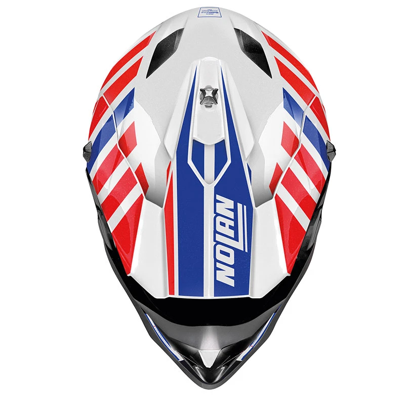 Se siete appassionati di fuoristrada e desiderate regalarvi un nuovo casco, prendete in considerazione il Nolan N53 (cliccate qui per le immagini delle molte grafiche disponibili). Il casco è costruito in policarbonato LEXAN (materiale leggero e resistente) con due calotte disponibili. L’apertura frontale è particolarmente ampia al fine di poter ospitare diversi tipi di occhiali. TESTA CLIMATIZZATA CON L’AIRBOOSTER TECHNOLOGY Tornando alle caratteristiche tecniche, l’interno è realizzato con tessuti colorati che vanntano una elevata traspirabilità e capacità di assorbimento del sudore. L’imbottitura interna è estraibile e lavabile ed è presente un sistema di ventilazione che offre una ampia climatizzazione interna, anche grazie alle numerose prese d’aria ed estrattori presenti del sistema Airbooster Technology. La chiusura è affidata ad un sistema di ritenzione con doppi anelli (DD-ring).